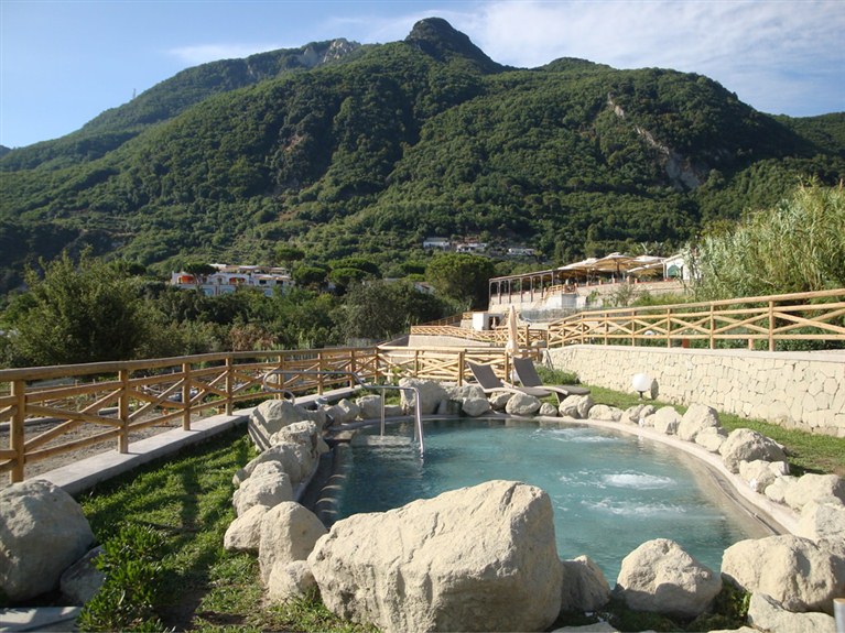 Immerso nel verde della rigogliosa vegetazione Ischitana, in posizione panoramica e con parco termale interno composto da ben 10 piscine.